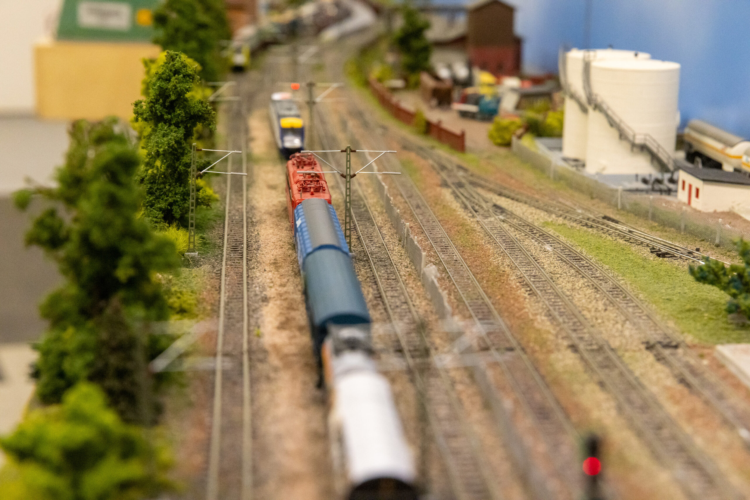Die BSW-Freizeitgruppe MEC Hannover hat für die Ausstellung „Modelleisenbahnen im Wandel der Zeit“ eine vielfältige Auswahl an Exponaten zusammengestellt. Eine besondere Attraktion ist eine große Spur-N-Modellbahnanlage, auf der zahlreiche Züge analog wie auch digital verkehren. Ein Kleinstadtbahnhof ist der Mittelpunkt der Anlage. Es halten Regionalzüge und S-Bahnen. Aber auch der Fernverkehr ist hier zu sehen. Im angeschlossenen Güterbahnhof gibt es zahlreiche Anschließer, die für reichlich Güterverkehr sorgen. Über ein Industriegleis sind weitere Kunden angeschlossen. Auf vielen weiteren Modulen kann man kleine Szenen des Alltags entdecken.