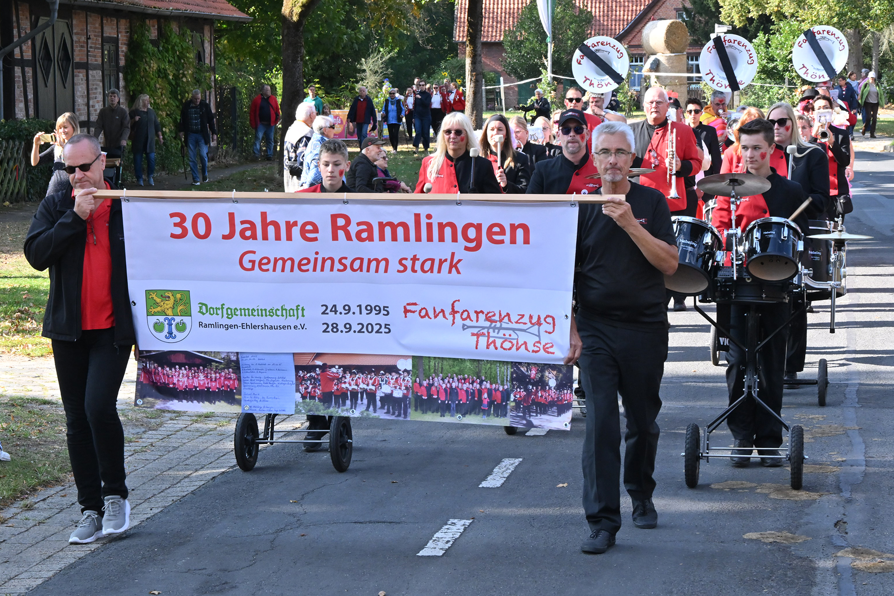 Es war alles vorbereitet für das Event des Jahres in Ramlingen: Am gestrigen Sonnabend, 27. September 2025, wurde mit Melanie „Melli“ Wottke die 53. Ramlinger Erntekönigin proklamiert (wir berichteten). Heute stand der zweite Festumzug auf dem Programm. Bei 20 Grad und wolkenlosem Himmel kamen die Besucher in Scharen. „So viele Besucher hatten wir noch nie“, urteilt Frank Berg von der Ramlinger Dorfgemeinschaft, die das Fest nunmehr zum 58. Mal veranstaltet hat.