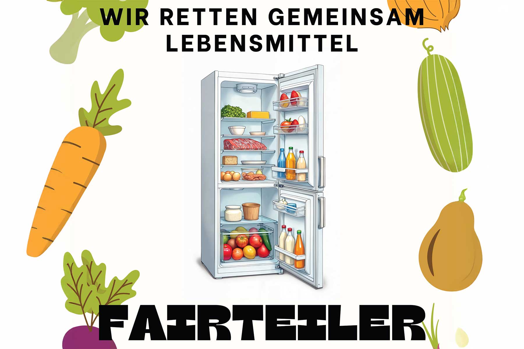Ein FAIRteiler ist ein öffentlicher Kühlschrank mit zusätzlichem Regal, in dem überschüssige, aber noch genießbare Lebensmittel kostenlos abgegeben und von anderen mitgenommen werden können. Ziel ist es, Lebensmittelverschwendung zu vermeiden, das Bewusstsein für nachhaltigen Konsum zu fördern und einen Beitrag zu mehr sozialem Miteinander zu leisten. Wer etwas übrig hat oder etwas benötigt, kann sich beteiligen – nach dem einfachen Prinzip: Geben und Nehmen mit Verantwortung. Die Entnahme erfolgt dabei freiwillig und auf eigene Verantwortung.