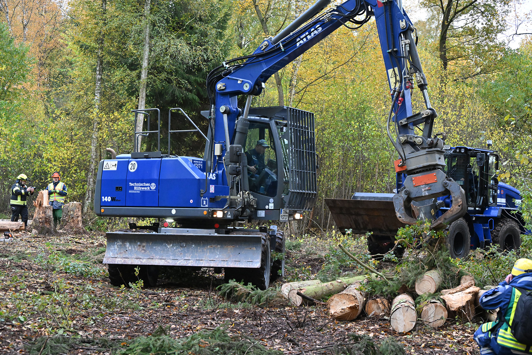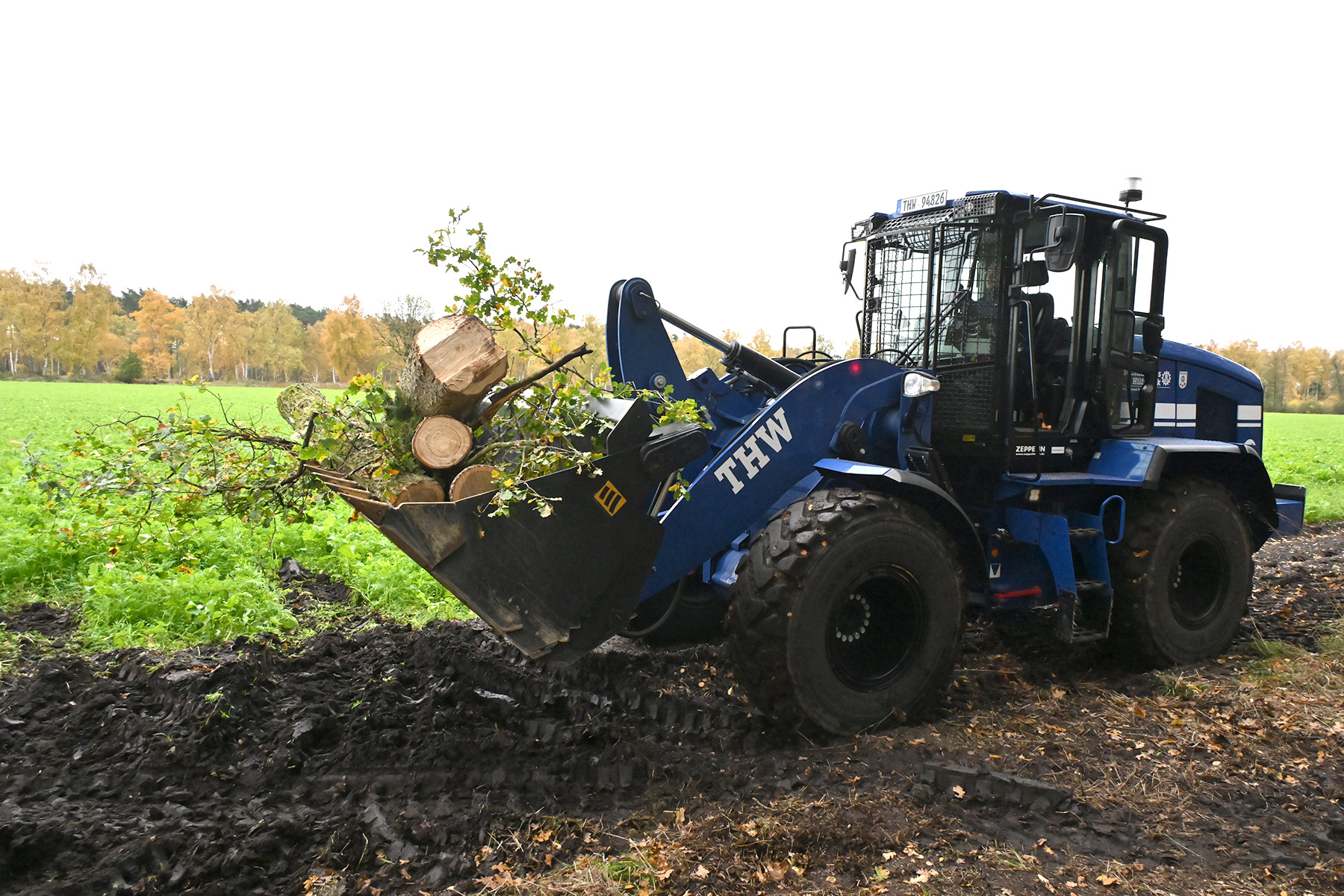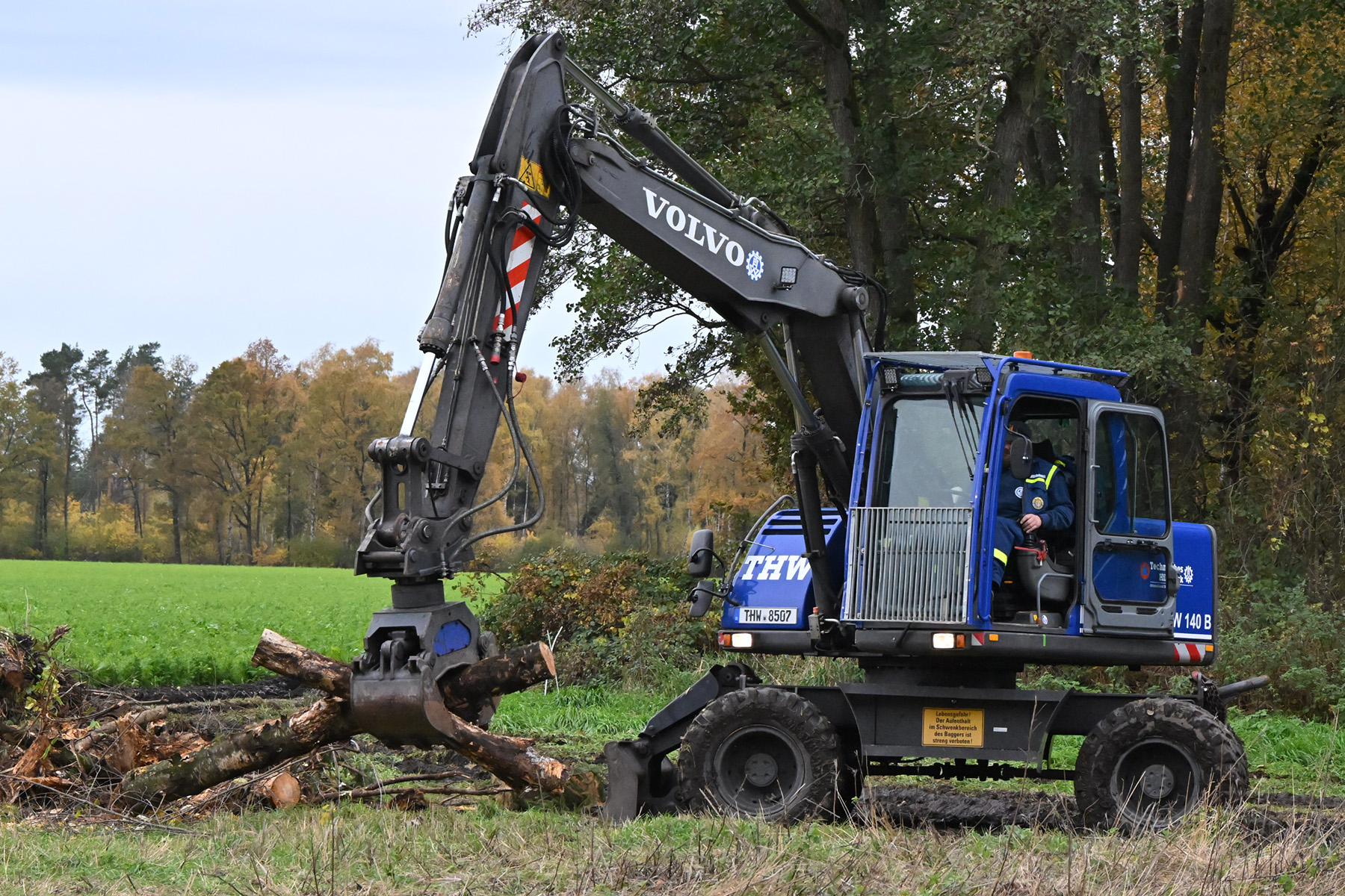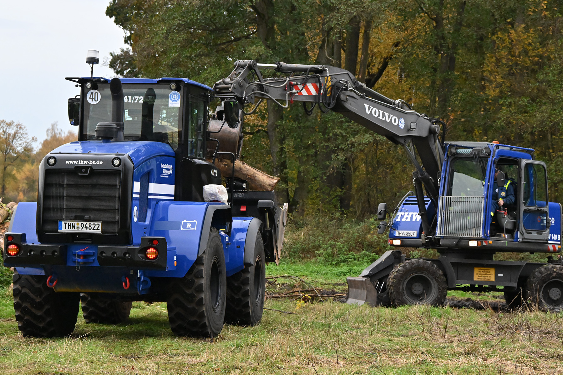 Am gestrigen Sonnabend, 1. November 2025, war es nicht ruhig im Wald nordwestlich von Weferlingsen. Überall waren Radlader, Kipplaster und vor allem Motorkettensägen zu hören. Der Grund war eine großangelegte Übung der Räumgruppen des Technischen Hilfswerks (THW). Der THW-Landesverband Bremen/Niedersachsen war mit rund 85 Einsatzkräften vor Ort.