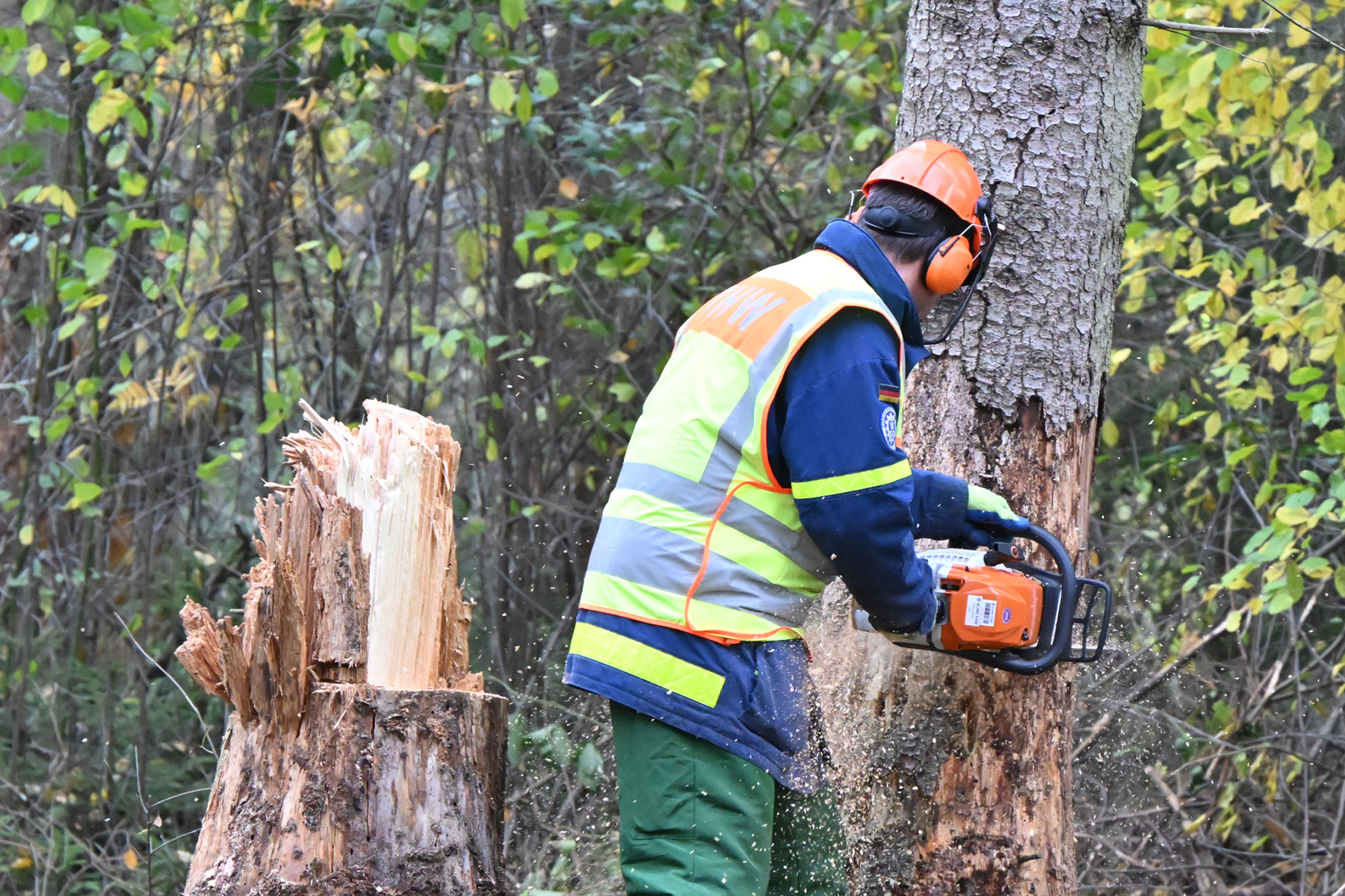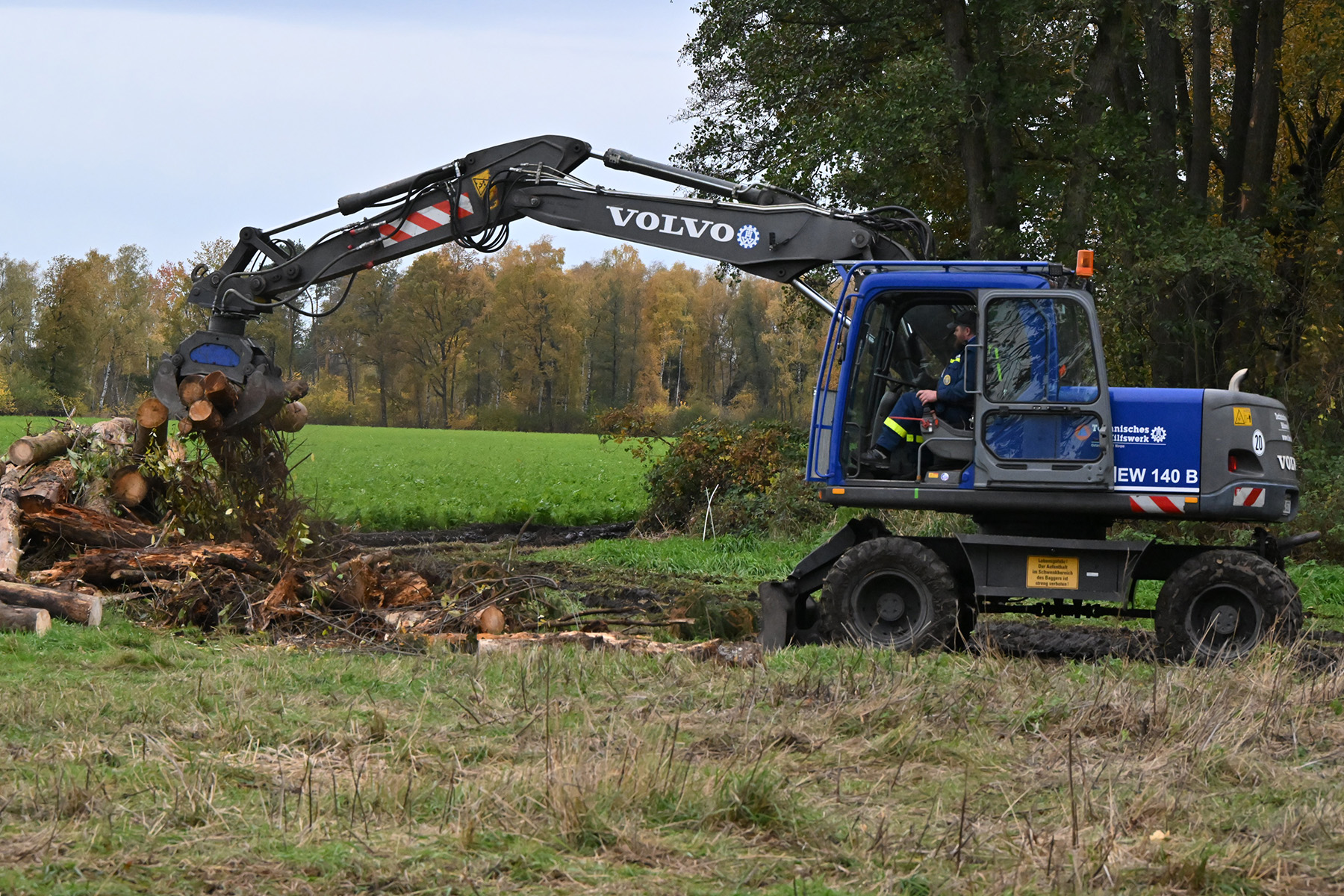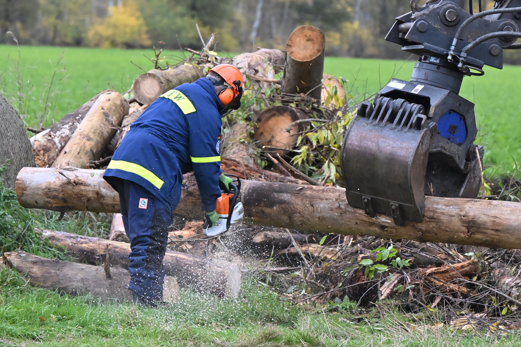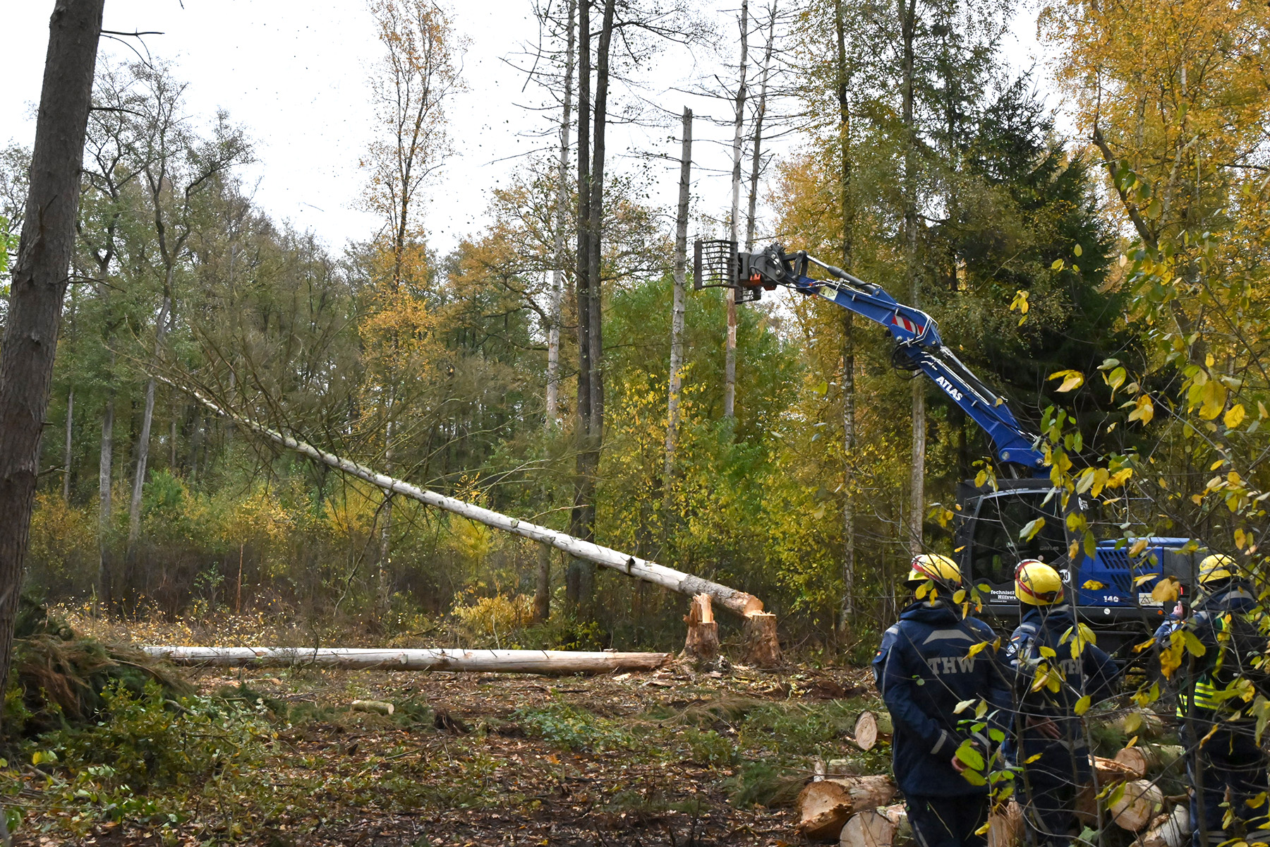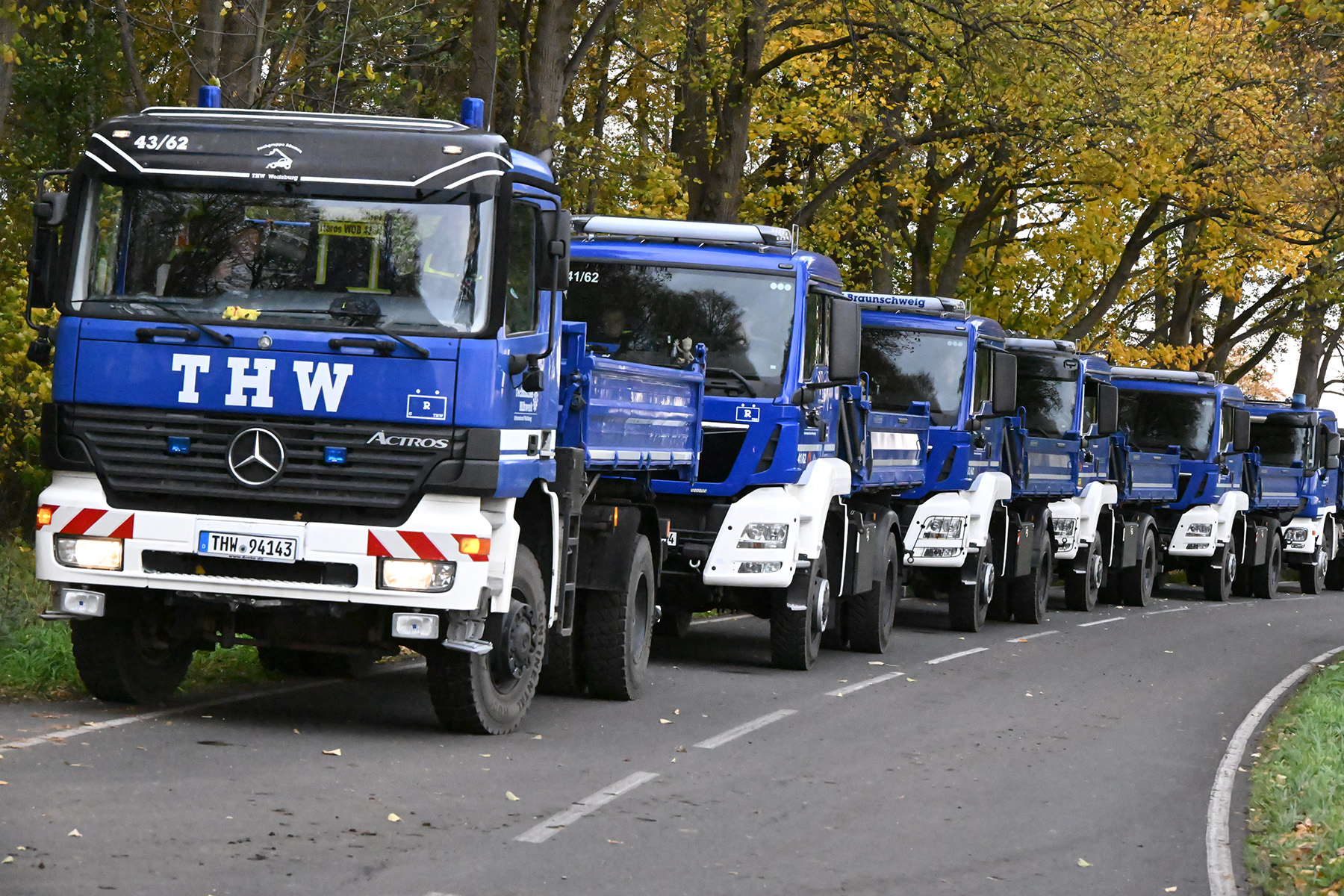 Am gestrigen Sonnabend, 1. November 2025, war es nicht ruhig im Wald nordwestlich von Weferlingsen. Überall waren Radlader, Kipplaster und vor allem Motorkettensägen zu hören. Der Grund war eine großangelegte Übung der Räumgruppen des Technischen Hilfswerks (THW). Der THW-Landesverband Bremen/Niedersachsen war mit rund 85 Einsatzkräften vor Ort.