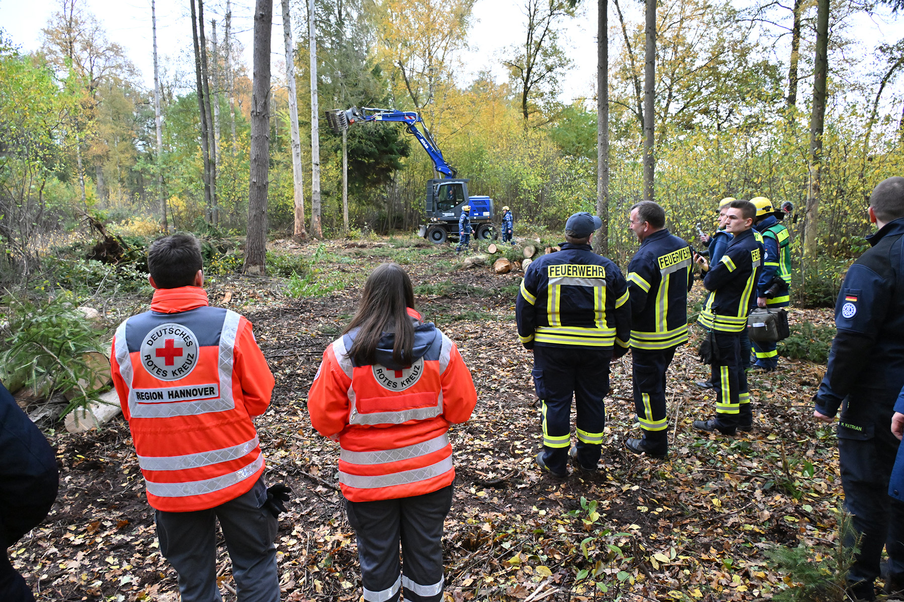Wie Heiko Hennecke von der THW-Regionalstelle Hannover erklärt, galt der Einsatz primär dem Anlegen einer Brandschneise, aber auch dem Verlegen von Bodenplatten, um durch unwegsames Gelände zu kommen. „Brandschutz ist nicht unsere primäre Aufgabe“, so Hennecke, der zusammen mit Gerrit Schrader vom THW Burgdorf die Übung ausgearbeitet hatte. „Doch manchmal kommen dann auch die anderen Einsatzkräfte an ihre Grenzen“, weiß er. Bei größeren Waldbränden werde zunächst versucht, mit den Forsten und Feuerwehren Bereiche vor dem Feuer zu schützen. „Ziel der Übung hier heute ist, dass wir mal sehen wollen, inwieweit wir bei sowas auch unterstützen könnten. Wir haben ja das Gerät“, erklärt Hennecke.