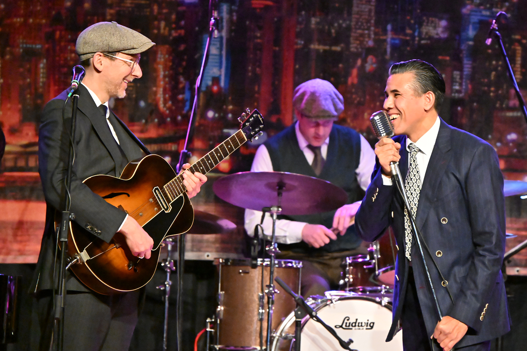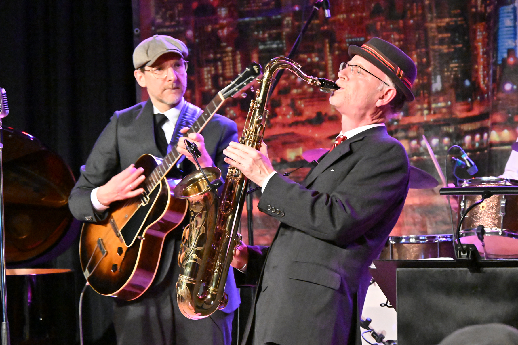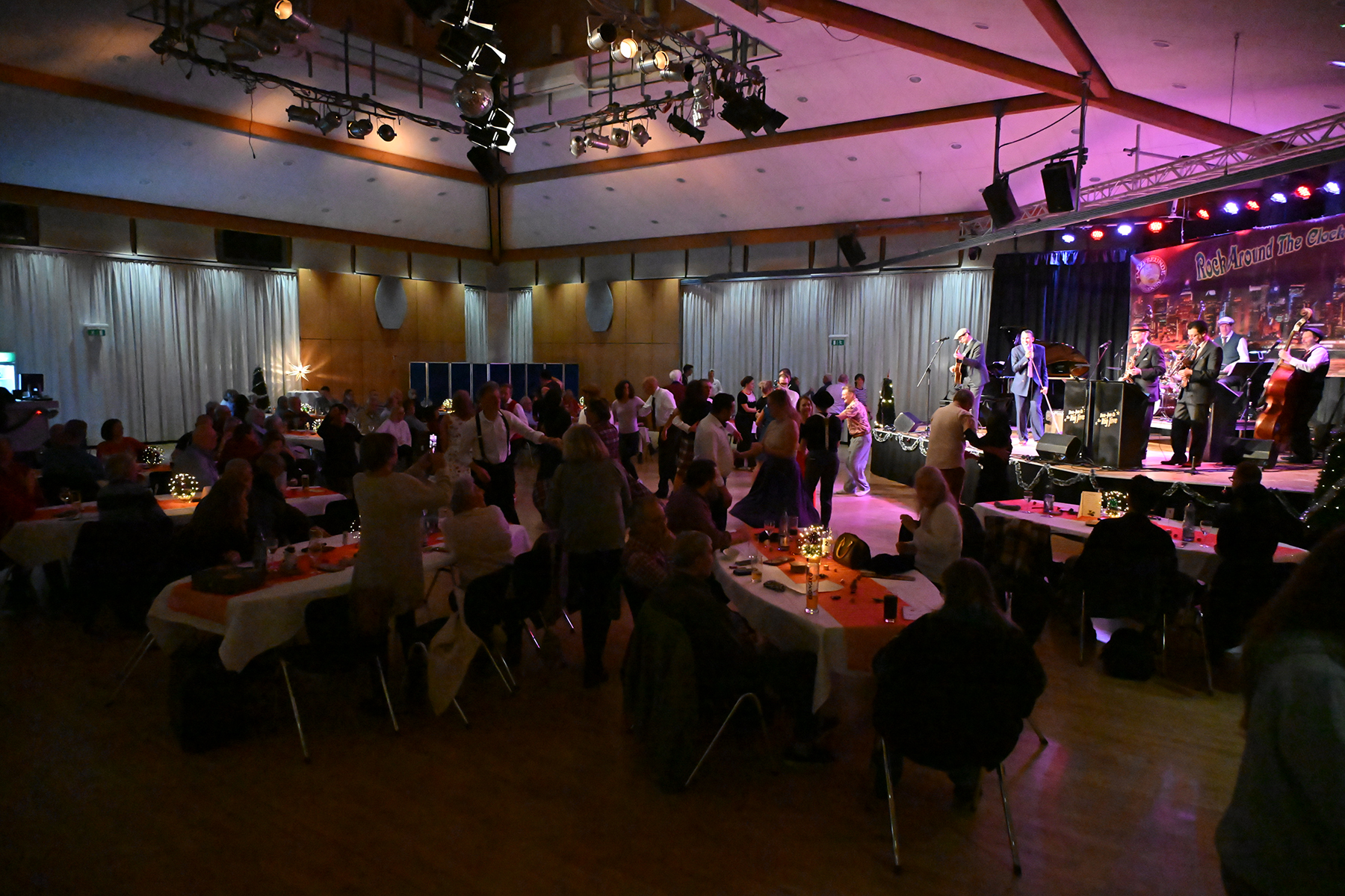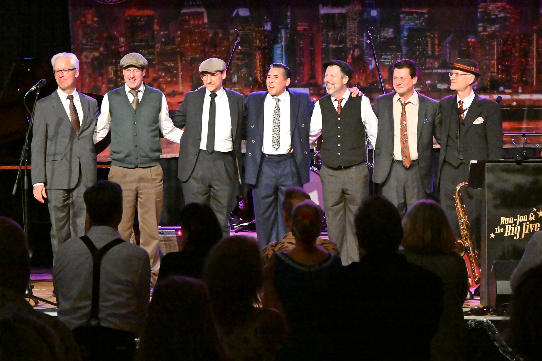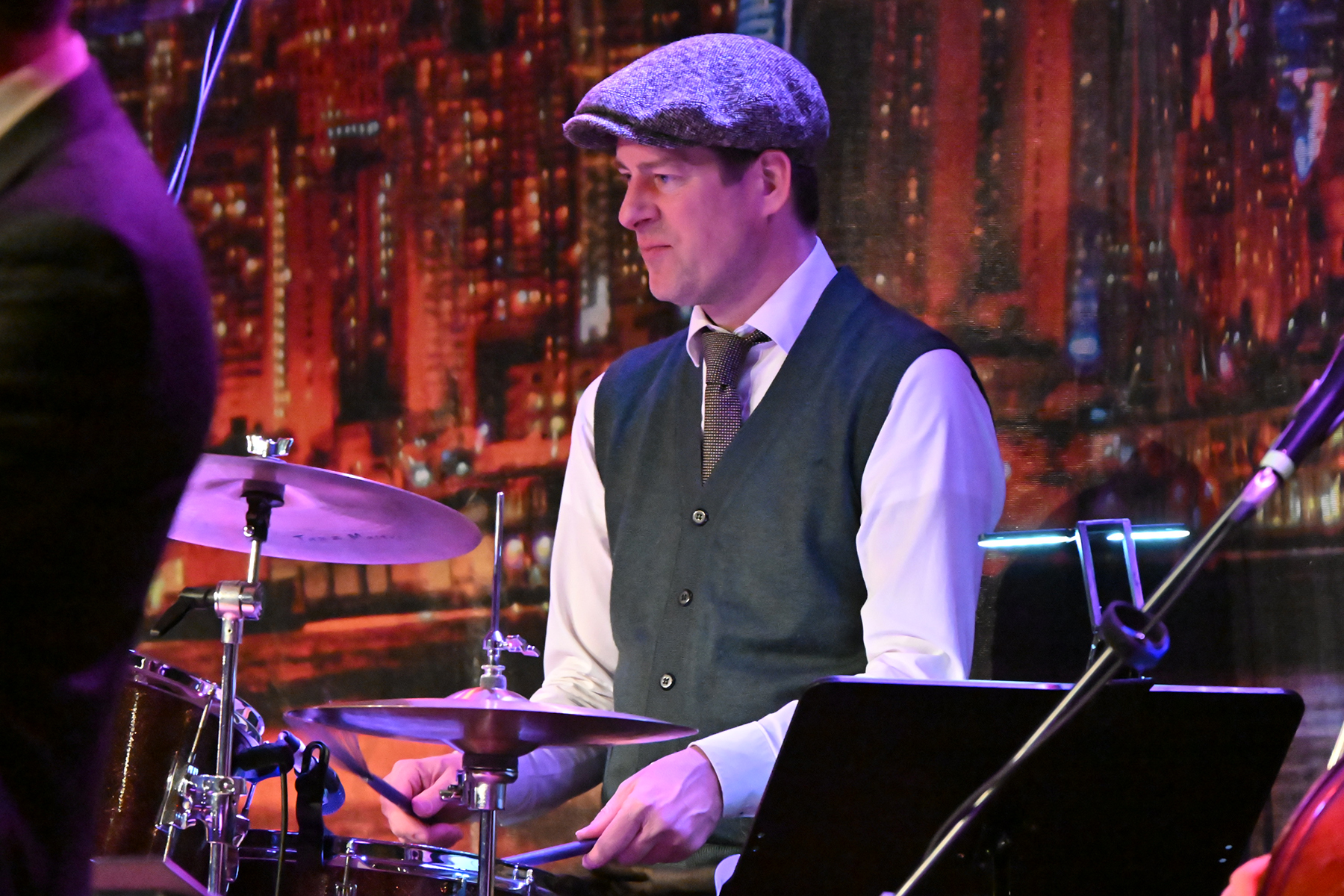Bun-Jon & The Big Jive spielt Swing, Jump und Jive, also vor allem schwungvolle US-Tanzmusik im Stil der 1930er und 1940er Jahre, mit Titeln unter anderem in der Tradition von Louis Jordan, Nat King Cole und Ray Charles. Im Programm fanden sich auch Stücke in Anlehnung an Louis Prima, der am heutigen Sonntag, 7. Dezember, seinen 115. Geburtstag gehabt hätte. Entsprechend erschien auch das Publikum: Viele der Tänzer hatten sich stilvoll an der Mode jener Zeit orientiert, was das Gesamtbild auf der Tanzfläche zusätzlich prägte.