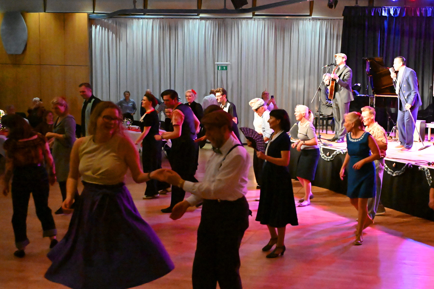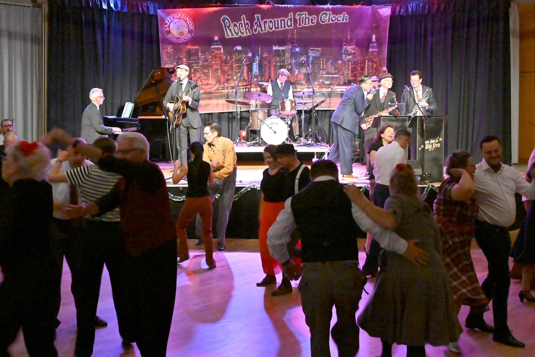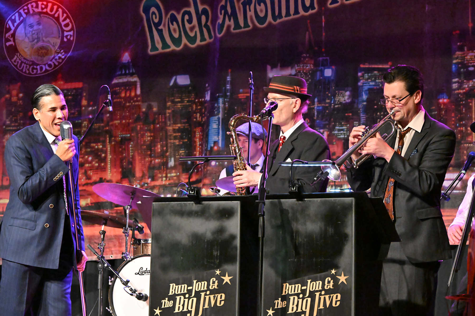 Die Band war bereits zum dritten Mal in Burgdorf, und Kenner wussten: Bun-Jon & The Big Jive gibt vom ersten Takt an Vollgas. So war es auch diesmal, als sich die Tanzfläche schon nach wenigen Augenblicken füllte. „So viele Tänzer hatten wir noch nie“, sagte Paul Rohde vom Kulturverein Jazzfreunde Altkreis Burgdorf, der das Konzert veranstaltet hatte. Rund 50 Tänzer waren eigens für den Abend aus ganz Norddeutschland angereist, unter anderem aus Oldenburg, Bielefeld, Magdeburg, Minden und Kassel. Kein Wunder: Die Band ist international gefragt, Auftritte vor 10.000 Zuschauern seien für sie nichts Ungewöhnliches, erzählte Bun-Jon. Und in naher Zukunft steht ein Auftritt in Norwegen auf dem Programm