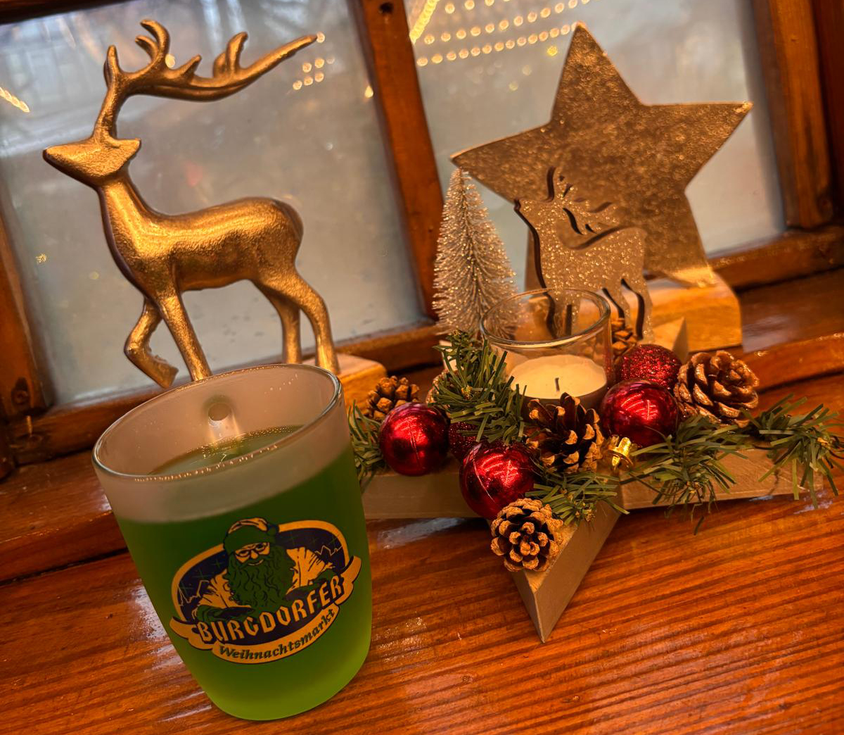 Neu „Der Grinch“ (weißer Glühwein mit grünem Apfel)