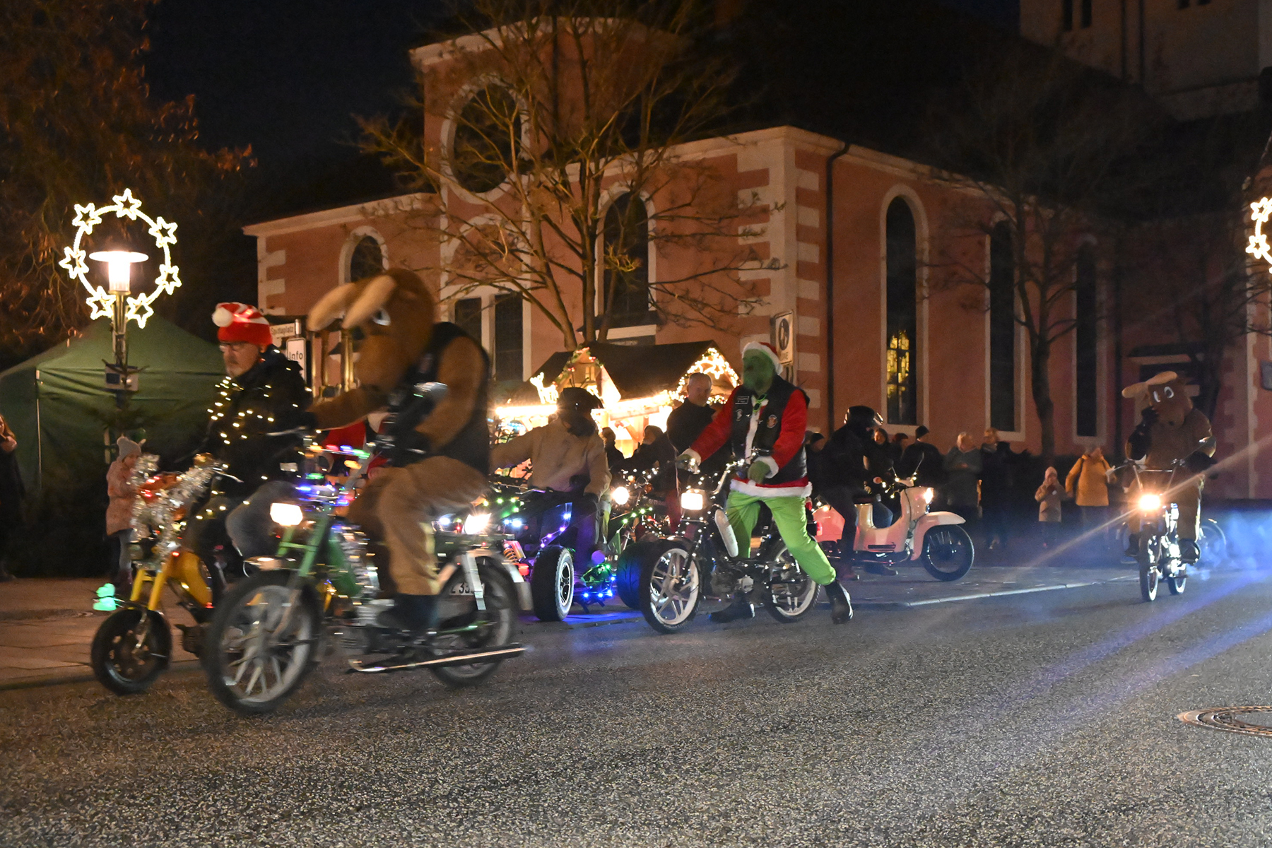 Nach einem Gang über den gut besuchten Weihnachtsmarkt und einem kleinen Getränk machten sich die rund 20 Mofafahrer auf ihre Abschlussrunde, die erneut durch die Innenstadt führte.