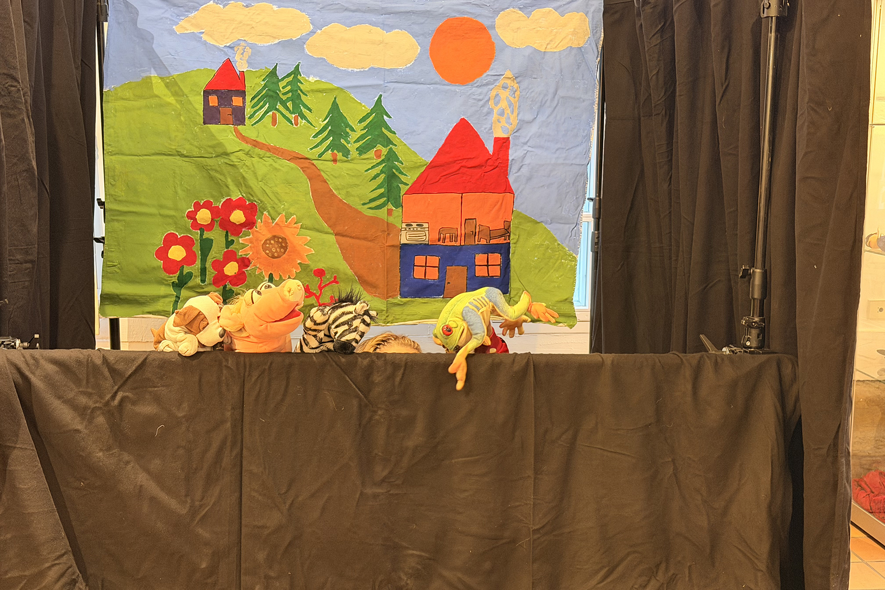Für eine gemütliche Atmosphäre sorgten frisch gebackene Waffeln, dazu gab es Tee und Kaffee, was den Museumsbesuch auch für die Erwachsenen zu einem entspannten Sonntagsausflug machte. Währenddessen konnten die Kinder an einer eigens aufgebauten Puppenbühne selbst aktiv werden: Mit Handpuppen erweckten sie Figuren zum Leben, erfanden spontane Geschichten und spielten kleine Szenen vor ihrem Publikum. Die kleinen Aufführungen wurden nicht selten mit kräftigem Applaus belohnt.