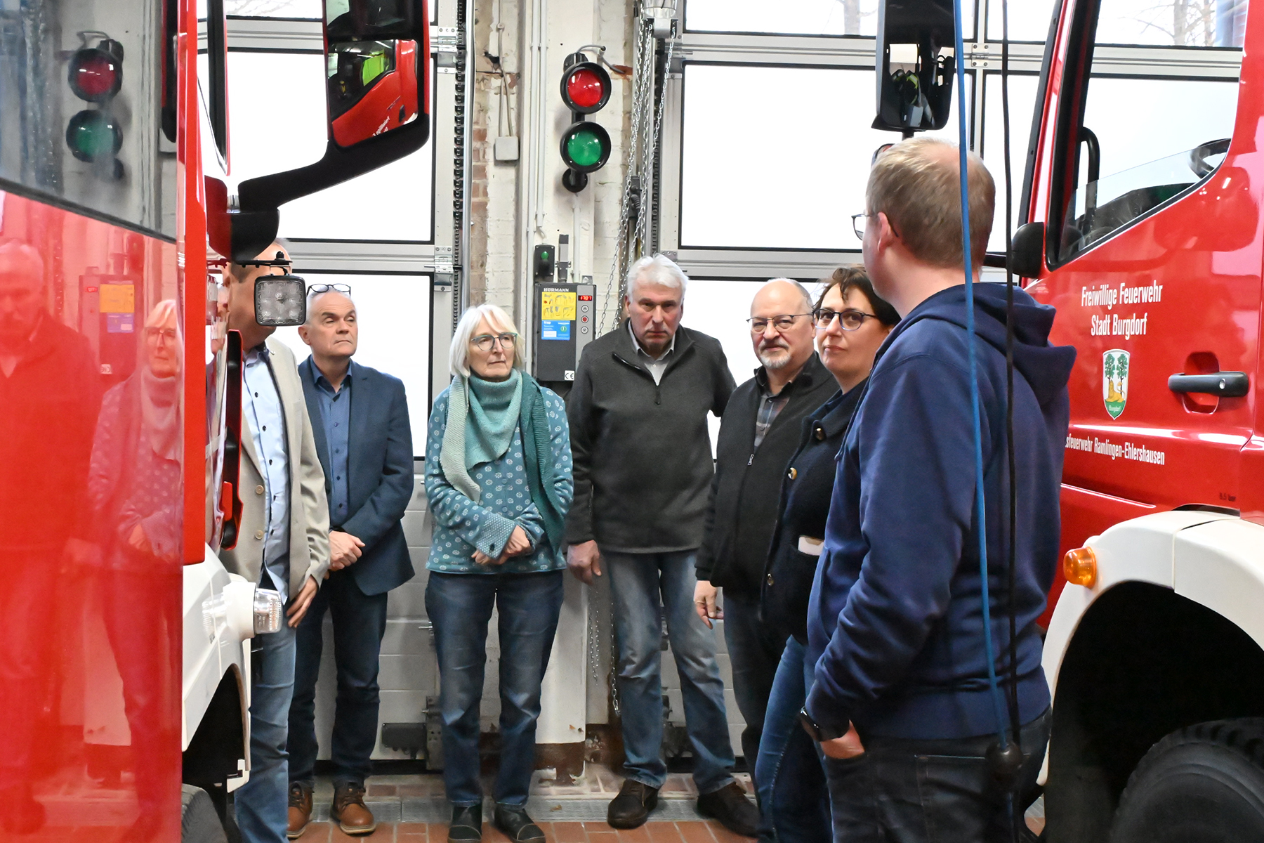 Die Autotüren schlagen gegeneinander, wenn beide Fahrzeuge besetzt werden sollen. Helme stapeln sich in zwei Ebenen, weil kein Platz mehr ist. Eventuell kontaminierte Schutzkleidung wird mit nach Hause genommen. Bei einer Begehung des Feuerwehrhauses Ramlingen am heutigen Mittwoch, 19. Februar 2026, wurde dem Feuerwehrausschuss der Stadt Burgdorf drastisch vor Augen geführt: Das 53 Jahre alte Gebäude ist für 63 Einsatzkräfte, 16 Kinder und zehn Jugendliche viel zu klein.