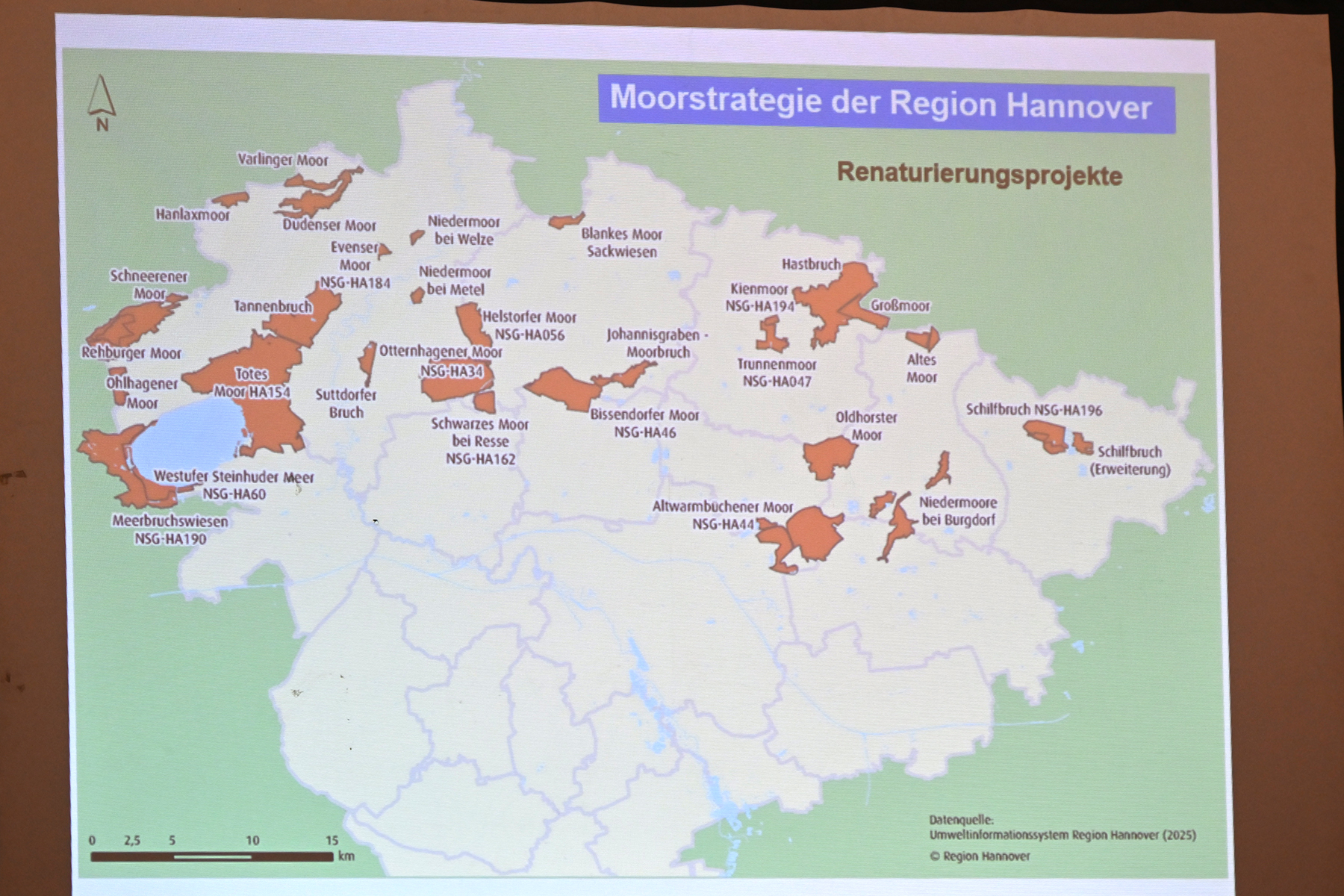 Rund 600 Hektar Moor, fast 10.000 Tonnen CO₂-Äquivalent pro Jahr und ein ehrgeiziger Zeitplan: Die Renaturierung des Oldhorster Moores war das zentrale Thema der jüngsten Sitzung des Ausschusses für Umwelt, Stadtentwicklung und Bau der Stadt Burgdorf, am heutigen Dienstag, 10. März 2026. Erster Regionsrat und Umweltdezernent Jens Palandt und Samantha Grah von der Unteren Naturschutzbehörde der Region Hannover stellten das Projekt vor.