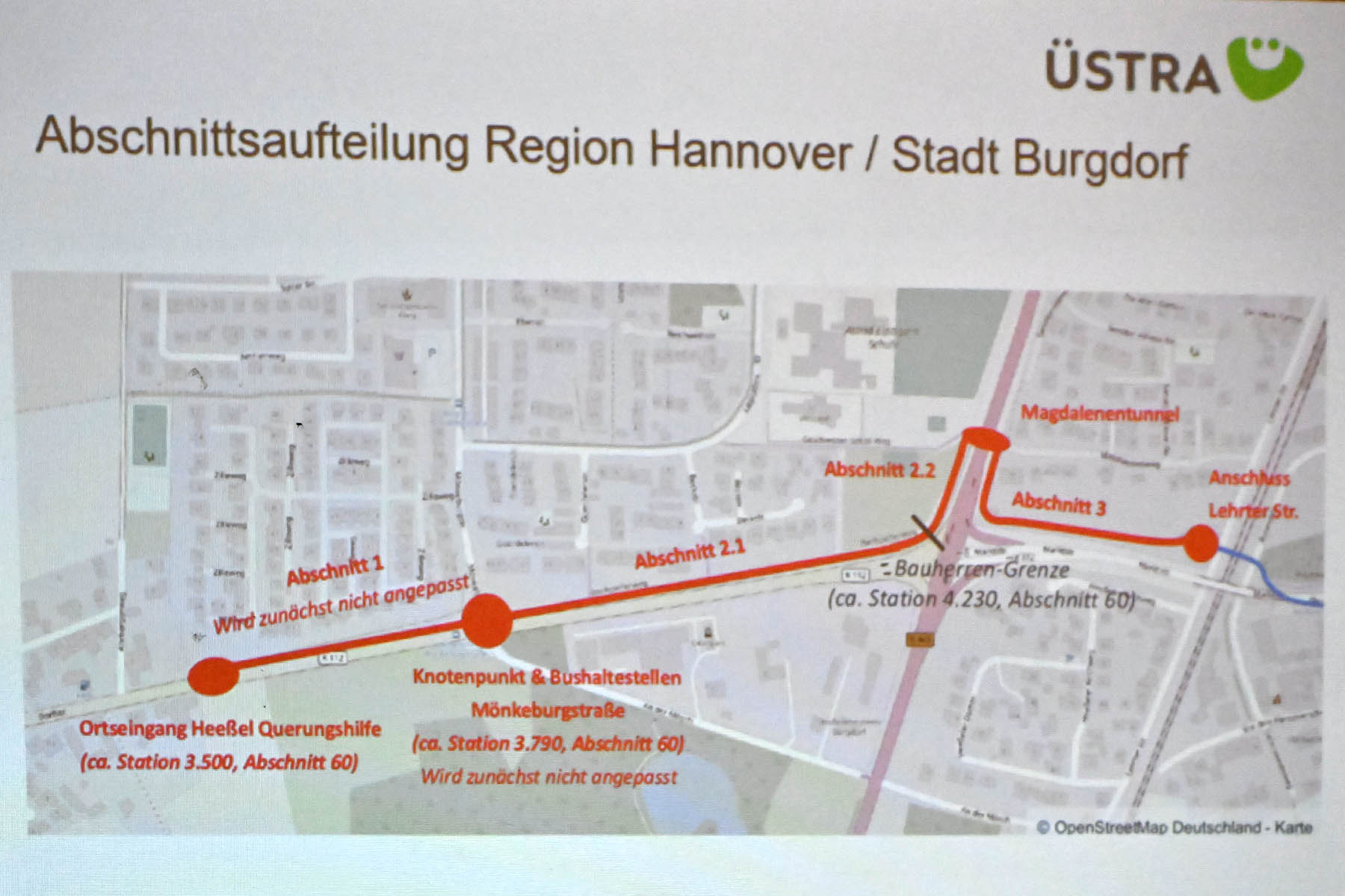 Am Ortsausgang Heeßel ist eine Querungshilfe für den Rad- und Fußverkehr geplant, ergänzt durch eine Fahrbahnverengung in Richtung Burgdorf. Die bestehende Verbindung zum Magdalenentunnel soll im Bestand ausgebaut werden. Das beratende Ausschussmitglied Lutz Wackermann betonte, wie wichtig dieses Endstück für die Einwohner von Beinhorn und Heeßel sei: „Ich appelliere daran, dass dieses Endstück separat umgesetzt wird.“ Anfang 2027 soll es mit dem ersten Bauabschnitt losgehen.